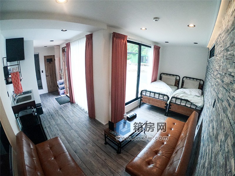 兩個 20 英尺大小的集裝箱和一個最多可容納 4 人同時居住的 L 形集裝箱房屋,配備了必要的生活設備,例如床、廚房、浴缸和廁所。擁有不遜于酒店的設施和醒目的外觀,讓住戶可以享受獨特的住宿體驗。