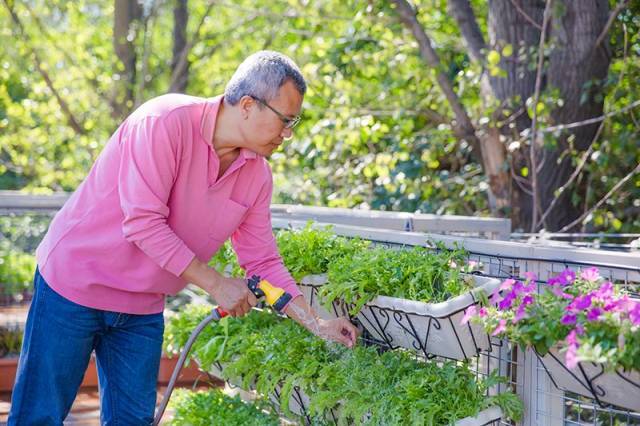 屋頂上種植了許多蔬菜,白蘇、空心菜、芝麻菜還有生菜,每天都有新鮮蔬菜吃!整個屋頂花園的澆灌系統,也暗藏玄機,微噴技術灌溉蔬菜花草,遠遠看過去,整個屋頂,就像是一個仙境一般。這樣功能齊全的循環廚房,難道你不羨慕嗎?這套微噴灌溉系統,結合著雨水收集系統,實現了廢水的再利用,種菜養花,都毫無壓力,并且環??裳h,簡直太贊了!