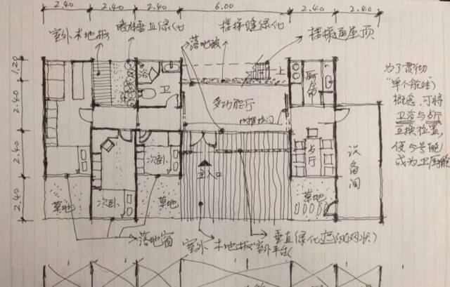 作為53歲的高齡北漂大叔,牛大叔自己花了好多張草圖,并且對集裝箱豪宅的水電垃圾處理、循環系統、綠化植物,也做了詳細的設計。