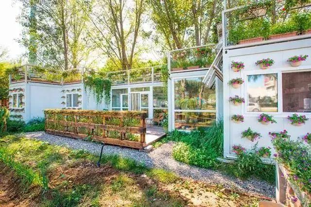 ▼這樣的生態小路,太陽曬起來,不會熱,而且透氣,能讓雨水下滲,小草小花可以自由生長,不久之后,就可以長成一片片綠草幽幽的小路。集裝箱的墻面上,牛大叔掛上了花盆,并且種植了許多花花草草,原本白色單調的墻面,成為了一組西班牙風格的花墻,真的太美了!空白的墻面,在花草的裝飾之下,立馬變得生動而富有靈氣。
