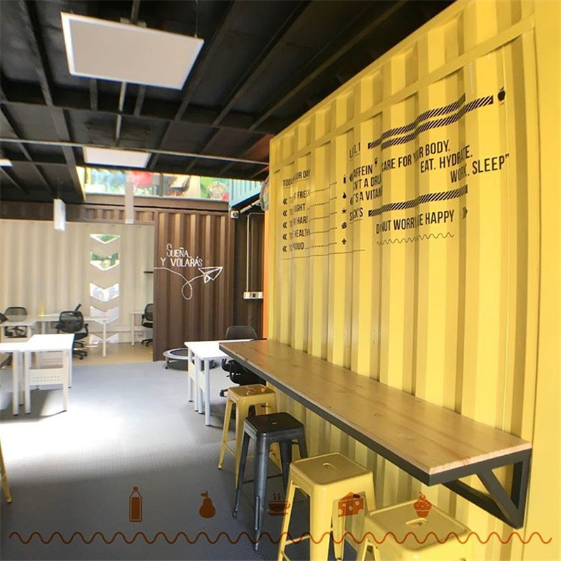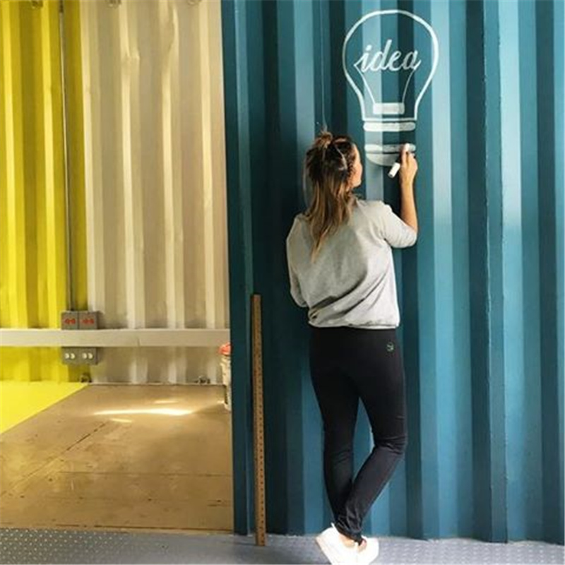 加固集裝箱邊緣以及確保箱體與箱體的銜接要吻合,不然下雨天漏水那就要濕身了哦~然后就要給集裝箱“穿衣服”啦~涂鴉上自己喜歡的圖案,或者加上自己喜歡的各種裝飾物,想裝飾什么全靠創(chuàng)意。涂鴉的墻體會(huì)給人帶來(lái)活潑的情緒,而墻上的標(biāo)語(yǔ)也會(huì)無(wú)時(shí)無(wú)刻警醒著自己要保持一顆充滿idea的頭腦。