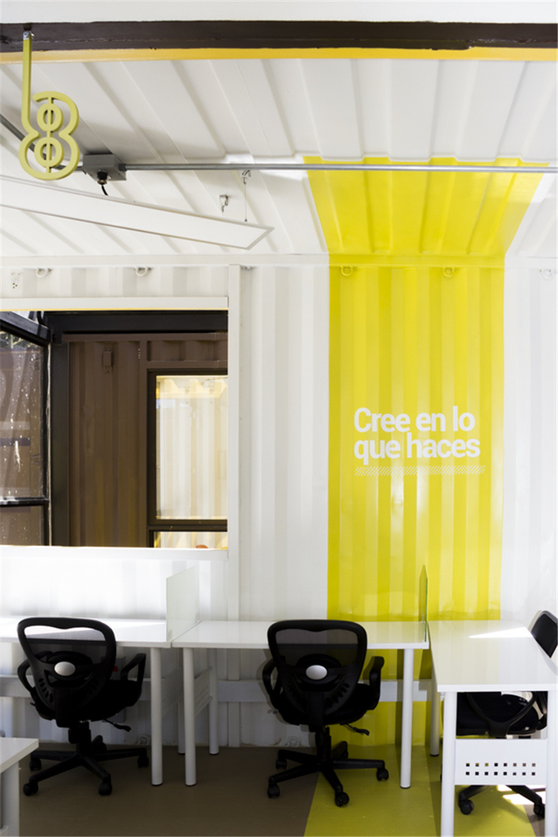 作為一個(gè)提供優(yōu)質(zhì)的辦公環(huán)境、設(shè)施以及服務(wù)的共享辦公空間,集裝箱內(nèi)部被改裝成多個(gè)擁有各種功能的區(qū)域和小房間。