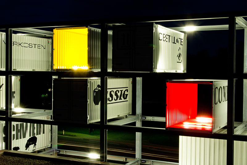 項目的誕生展示了建筑的設計能與公司的轉型架構進行連接。獨特的建筑方法(項目利用集裝箱建筑)在產生有趣的空間同時,也能代表著公司的經營理念,并提高品牌的認識價值。
