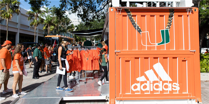 品牌宣傳在經營中十分常見,有效的宣傳有利于提高知名度和帶來可觀的經濟效益。一些知名品牌為了達到更好的宣傳效果還會選擇與其他領域的品牌合作,比如運動品牌阿迪達斯、邁阿密大學就進行了一次大流量合作,在一次對戰足球隊的比賽中,使用改造后的集裝箱作為個性化可移動零售空間,為游客創造了獨特的互動購物體驗。