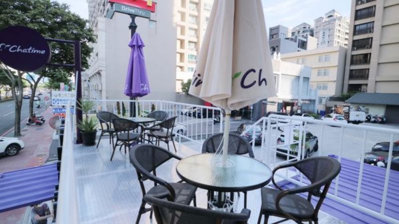 文興路往新竹高鐵站的方向前進(jìn),緊鄰著古風(fēng)古色的【春上布丁蛋糕】店,右手邊會(huì)看到一個(gè)非常顯眼的紫色貨柜屋,從古風(fēng)到工業(yè)風(fēng)的跳躍僅是幾步之遙。這抹街頭的浪漫紫來(lái)自于一家名為【日出茶太】的茶飲店,以手搖飲料為招牌。