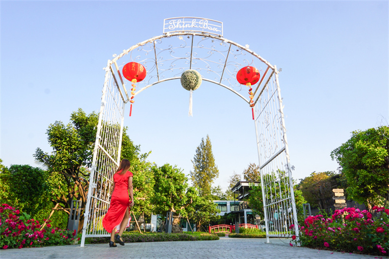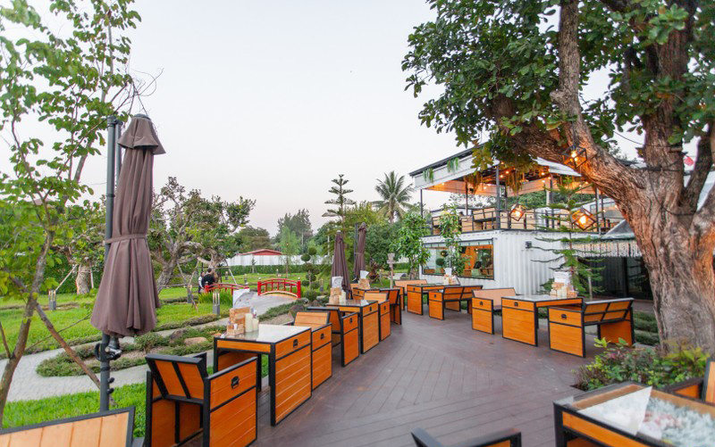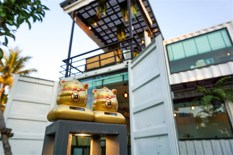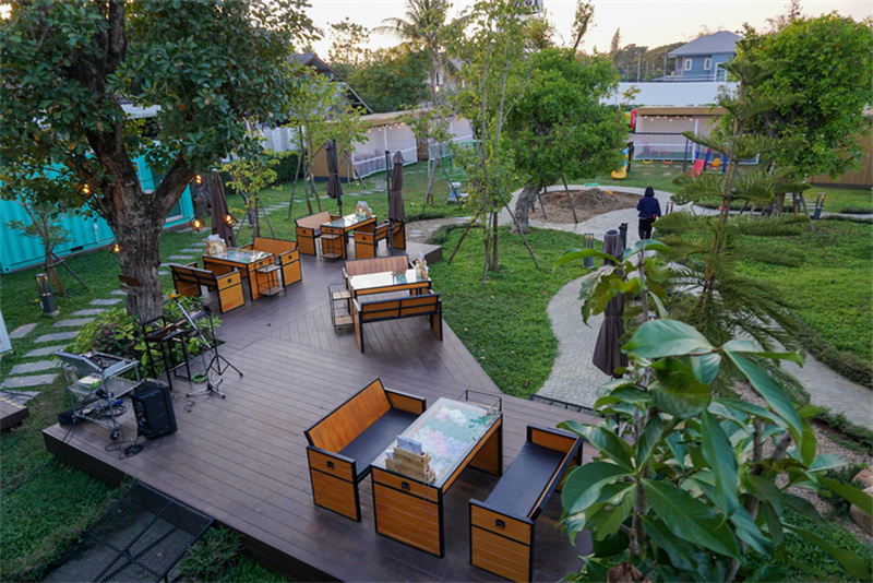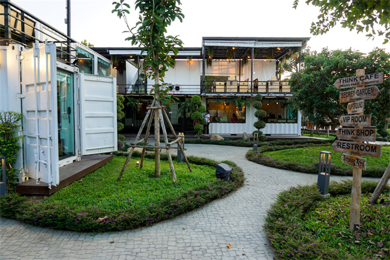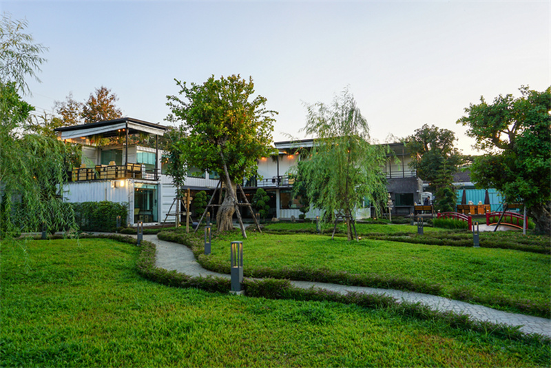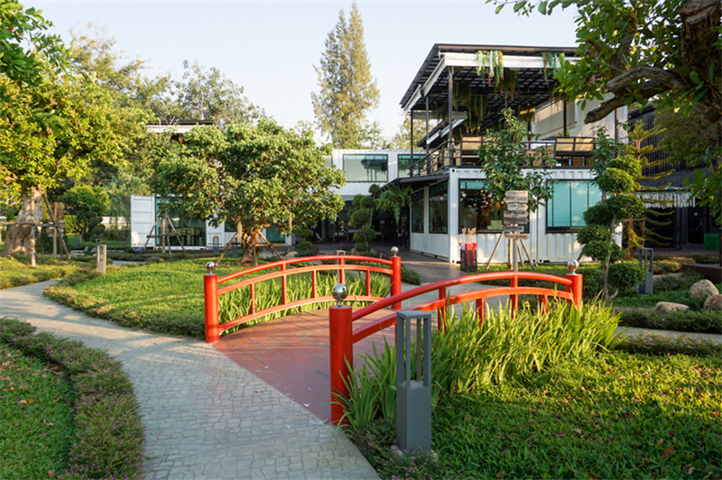 Think Box集裝箱餐廳位于清邁附近的省份,交通十分便利。這家店被設置在一個英式花園的中間,擁有私密區(qū)域并帶有一點日本氣息,那座紅色的橋是打卡的熱門景點。該商店的老板曾從事建筑業(yè)務,因此該餐廳也被打造得如同一家園藝店。