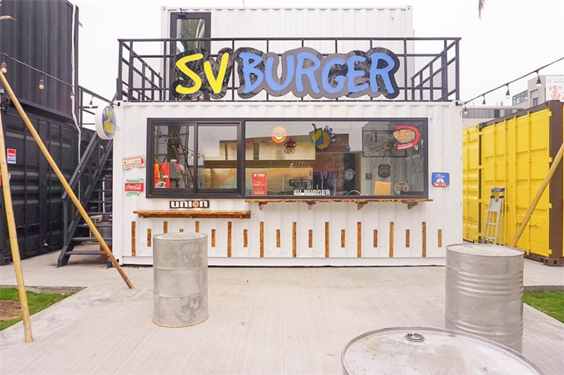 【SV Burger】美式漢堡店,店內主要用整塊原肉來制作漢堡。白色與黑色的色調結合,盡顯工業風。二樓設有戶外平臺和休息室,給游客提供一個悠閑享受的空間。
