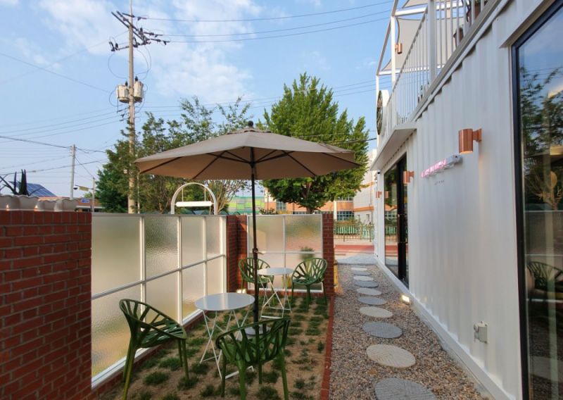 由多個集裝箱模塊共同構(gòu)建而成,這是一座兩層的建筑。該項目名為【四季美容沙龍】,為了打造溫馨宜居宜用的環(huán)境,建筑周邊建造了許多人造自然景觀,包括卵石路、綠植和草坪等,在這里享受美容服務(wù)就如同在家一般舒適。