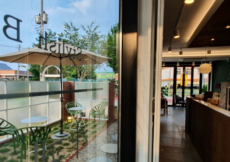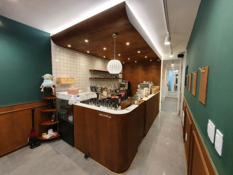 從工作區(qū)走到美容院的另一個功能區(qū),這邊是配備了茶水間的休息區(qū),為顧客提供貼心的等待區(qū)域。角落的吧臺使用木制材料覆蓋,并配備齊全的茶水調(diào)制工具,休息區(qū)內(nèi)放置了許多簡易的木制桌椅,靠窗而設(shè)的卡座可以欣賞到戶外的美景。