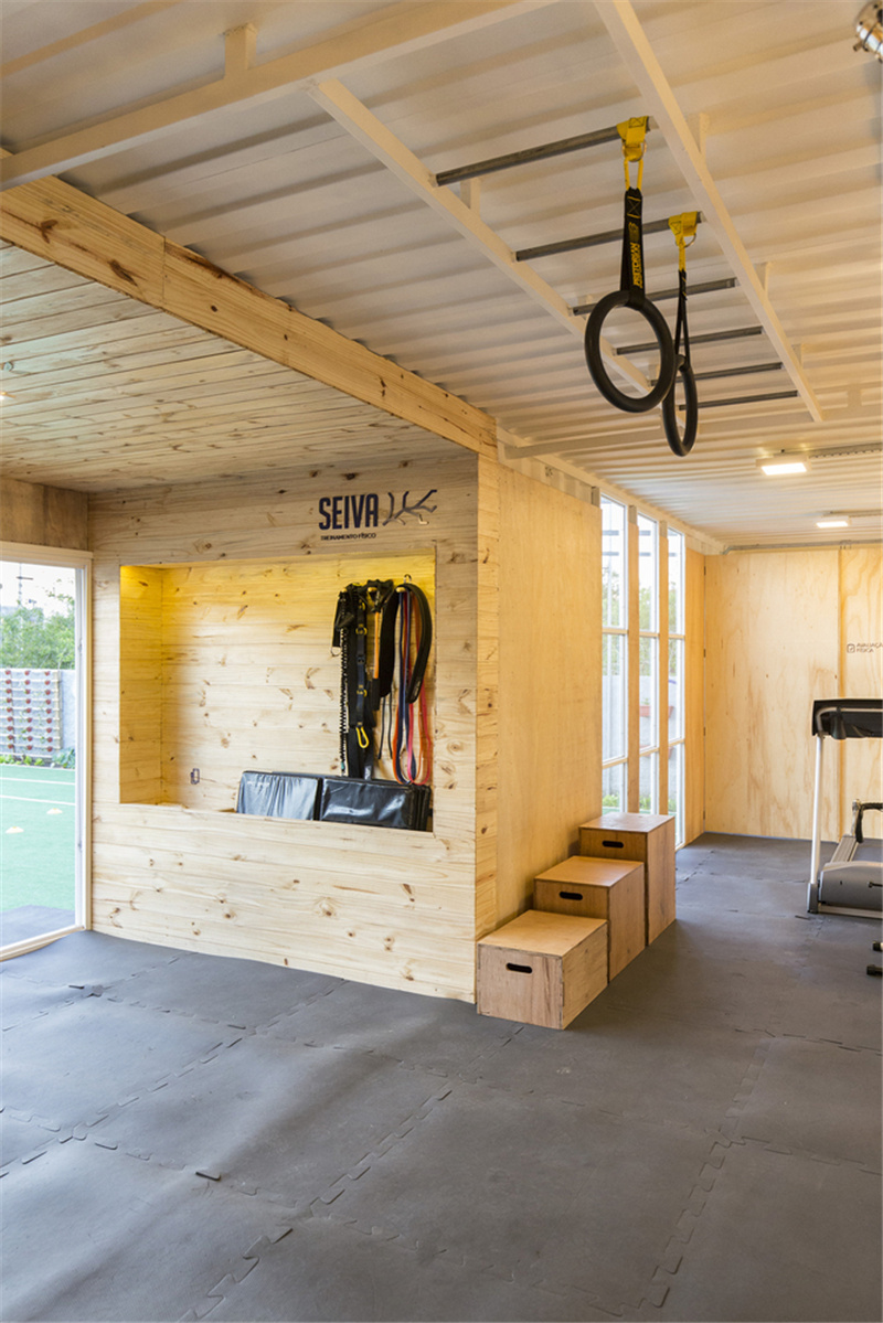 整座健身中心的內部區域包括帶有接待區的精品店、更衣室、室內培訓室和評估室;外部則包含了訓練區、休閑甲板、停車場和菜園等,面積達180平方米。所有的容器均沒有過多的附加裝飾,基本上就像移動普通容器一樣便捷,滿足隨搬隨走,落地即可使用的要求。
