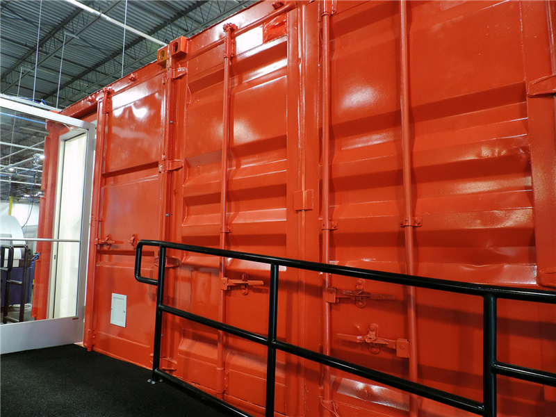 與紅色的集裝箱辦公室不同,這個藍色的集裝箱辦公室的里面采用了黑色的墻面,剛好與白色相對應,給人較為嚴肅的格調。