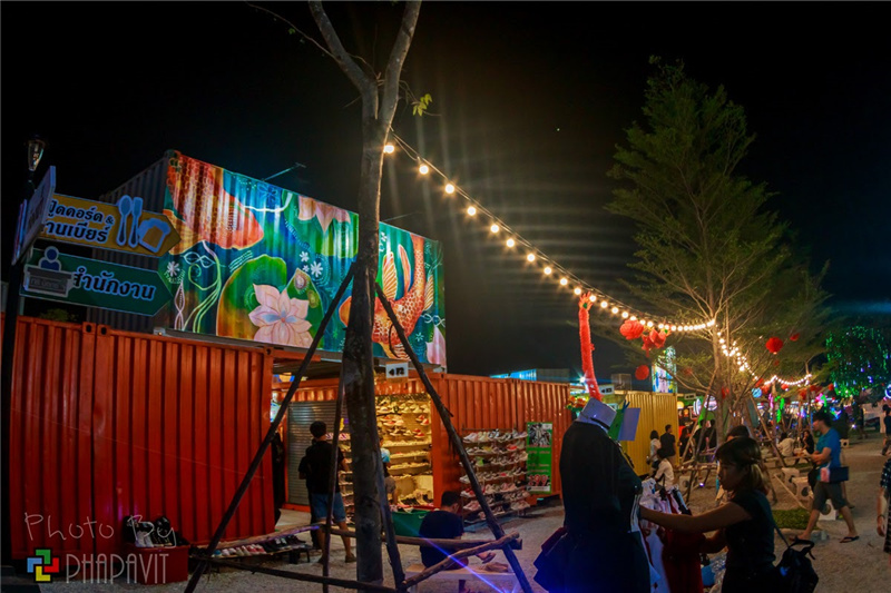 這是一個由集裝箱打造的商業街,在這里,相當于進入了一個大型的涂鴉藝術跳蚤市場,有各種各樣功能的集裝箱商店,滿足你吃喝玩樂的各種需求。市場的大門口由三個集裝箱堆疊而成,嵌上醒目的招牌大字和涂鴉著樹的圖案,從這里開始就要進到集裝箱涂鴉藝術世界了哦~白天金屬感爆棚,燈光夜景則十分夢幻!