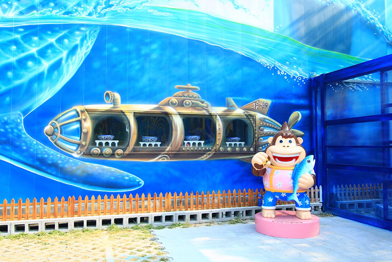 全臺灣最高的3D彩繪集裝箱在嘉義市,由知名3D彩繪藝術家圖龍所創作。就是你現在看到的這個巨型金剛,其身高高達9米,由4層集裝箱不規則堆疊而成,一旁還有皇宮般的海底世界,加長加寬,打造了令人震撼的3D效果,看到的路人紛紛拍照上傳社交平臺,使它一躍成為周邊游的新亮點。