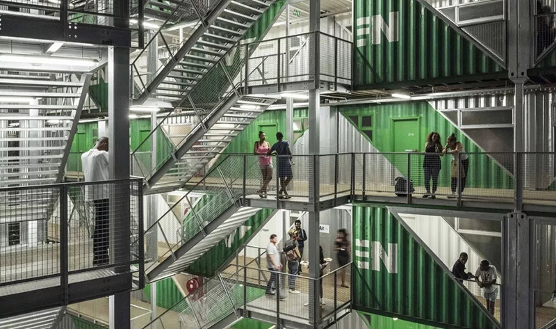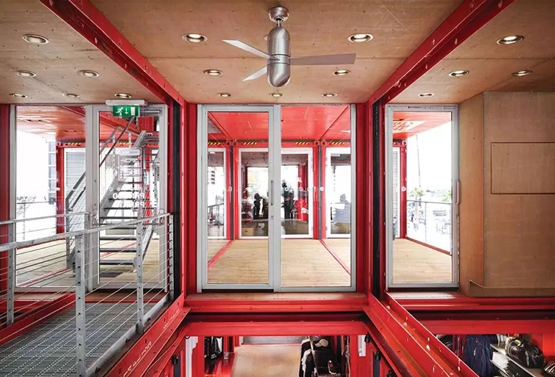 相信各位看到過不少相關(guān)案例,比如上圖 Common Ground 商場就比較熱門。其由超過200個集裝箱組件而來的四層建筑,藍色的搶眼外觀,為這個貨柜市集創(chuàng)造出不一樣的文化藝術(shù)氛圍。