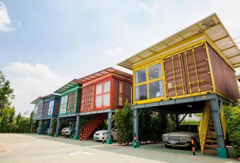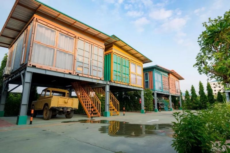 泰國(guó)作為一個(gè)熱門的東南亞旅游景點(diǎn)國(guó)家,有著許多特色的住宿酒店,為異國(guó)游客們帶來最具當(dāng)?shù)靥厣木幼…h(huán)境。泰國(guó)地處熱帶,不僅盛產(chǎn)水果,連建筑都是彩色的……DoTH Hotel 酒店的布局以庭院式為主,多棟由集裝箱改造而成的建筑圍繞在中心庭院旁。庭院建設(shè)著流動(dòng)的水池,并在角落種滿了各種綠植。