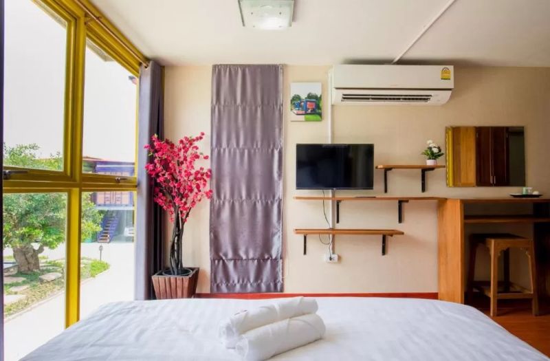 所有客房均配有帶有線頻道的平板電視、衣柜、冰箱和免費(fèi)無線網(wǎng)絡(luò)連接,并帶有私人浴室。其中,全景落地窗的設(shè)計(jì)不僅可以為室內(nèi)帶來充足的自然光線,還能讓住客享有花園的景致。