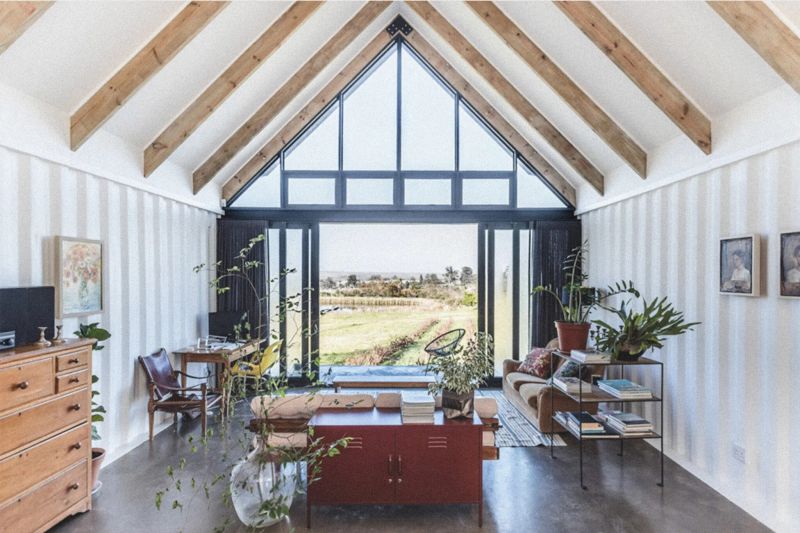 在建造集裝箱新建筑的時(shí)候,該房屋最重要特征是其屋頂,這是一個(gè)與舊建筑一樣的三角屋頂。因此,當(dāng)我們看房子時(shí),屋頂比集裝箱吸引了更多的注意力。該集裝箱建筑采用了大面積的玻璃窗設(shè)計(jì),以至于房子的前部幾乎是透明的,為室內(nèi)帶來了充足的自然光線和風(fēng)景。
