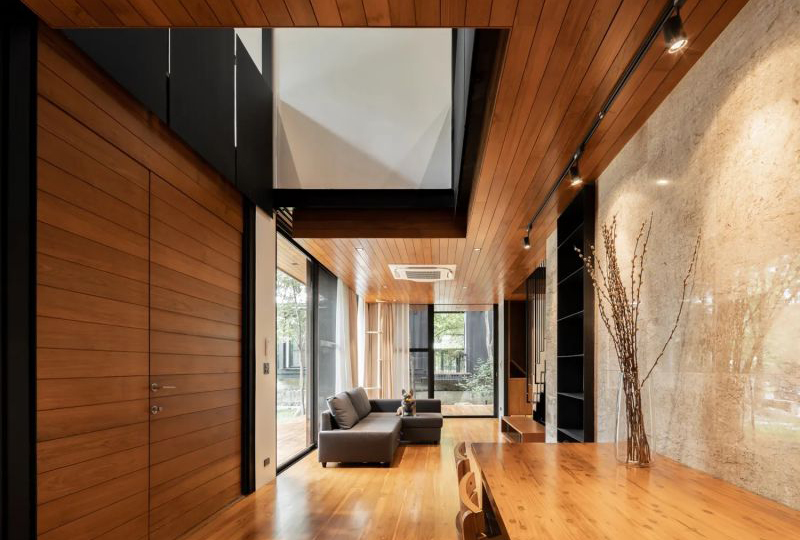 該房屋內(nèi)大多數(shù)樹木的種植時間都在3-4年,因此它們十分結(jié)實。負責該房屋項目的建筑公司具有花園設(shè)計專業(yè)知識,因此通過將露臺和開口連接起來,設(shè)法將花園、鐵房和工作室在內(nèi)的所有東西結(jié)合在一起,把熱帶花園的本質(zhì)融入每一個視圖,使住戶無論是坐在房子前面,還是走到二樓的樹梢附近,都可以透過窗戶看到綠色的空間,感覺就像是插入了紅木和綠植花園的房屋。