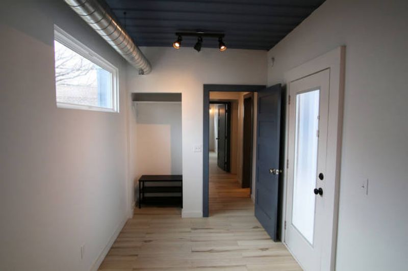 房屋內設有瓷磚貼面的主浴室和被漆成綠油油的洗衣房。衛(wèi)浴間設計的色調以藍色和白色為主,環(huán)境濕潤的淋浴間使用了瓷磚貼面以防潮,洗漱臺旁開設有面向院子的窗戶,創(chuàng)造通風透光的條件。被漆上綠色油漆的洗衣房已經設置好了線路和管道等,安裝家電后便可投入使用。