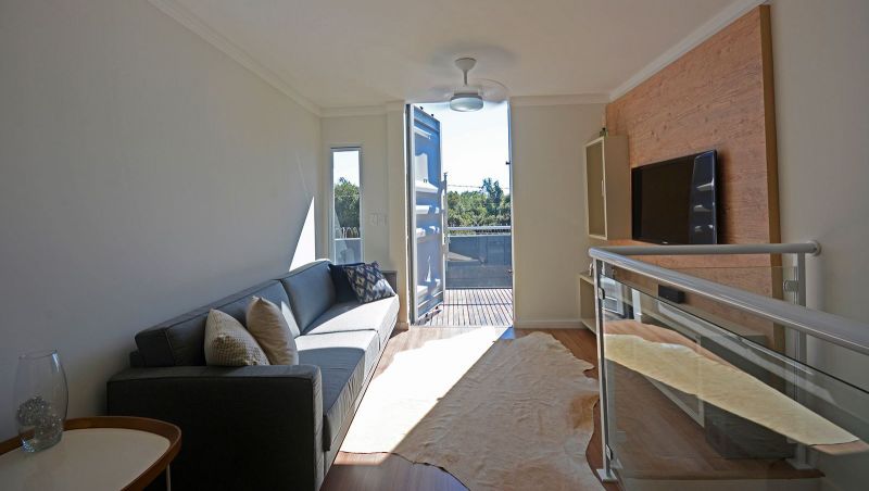 臥室和配套的衛浴間也設置在了二層,擁有更高的私密性。為了解決集裝箱金屬導熱的問題,集裝箱的內部在箱身和干墻之間使用了玻璃棉毯進行熱聲處理。在外部,“Ciaflex”層應用于整個集裝箱,阻隔金屬外殼吸收熱量,同時提供密封、上漆、防水和防雨淋的功能。