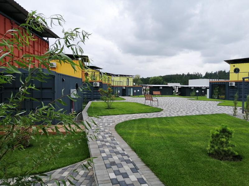 這些“Z”型的集裝箱民宿都是由兩個集裝箱錯位拼接而成,懸臂的地方會有鋼架構(gòu)支撐,是不是很像俄羅斯方塊里的其中一個圖案?懸臂的窗口面湖而設(shè),相同結(jié)構(gòu)的民宿沿湖邊一字排開。