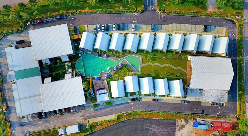 除了集裝箱設(shè)計(jì)的住房,這里其他的住宿也有水泥搭建的,屋頂外形設(shè)計(jì)是半圓尖型,顯得非常可愛!它除了豎向荷重時(shí)具有良好的承重特性外,還起著裝飾美化的作用。就像是一棟棟獨(dú)立的小別墅~