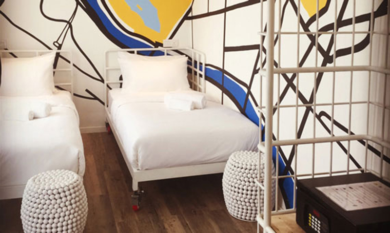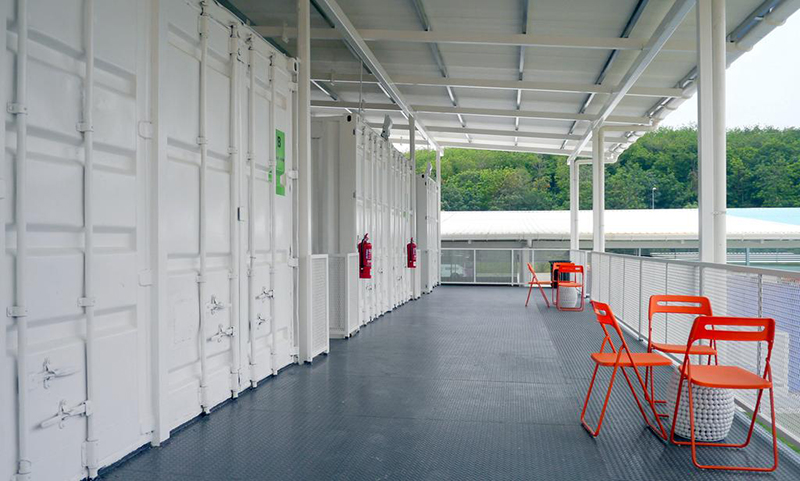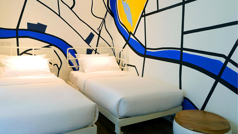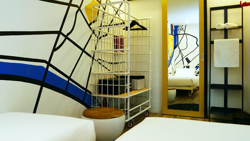 這些房間是從舊的集裝箱中發(fā)展出來的,反映了該地區(qū)的創(chuàng)新和高科技。白色涂層的集裝箱用作住宿房間,彩色涂層的集裝箱則是餐廳。集裝箱住宿都是二層設(shè)計(jì),提高土地利用率,同時(shí)為走廊添加一些休閑區(qū),再加上房號(hào)標(biāo)志的涂鴉,使得原本單調(diào)的住宅多了一些俏皮。