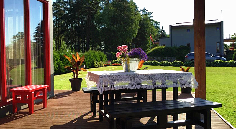 最讓人為之欣賞的是屋外的露臺(tái),幾張木桌椅放置在墊高的木平臺(tái),遮陽(yáng)布安裝在頂部避免太陽(yáng)直曬,各個(gè)角落放上各種盆栽,很是養(yǎng)眼,閑來(lái)沒事在屋外坐著欣賞周圍的景色也不失為一種享受。