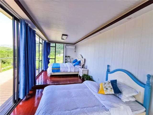 更加驚喜的是,這里還有懸在半空的玻璃集裝箱民宿!桃之源度假村負責人還起了個詩意的名字——柜族美宿。