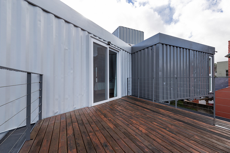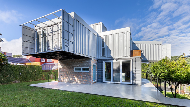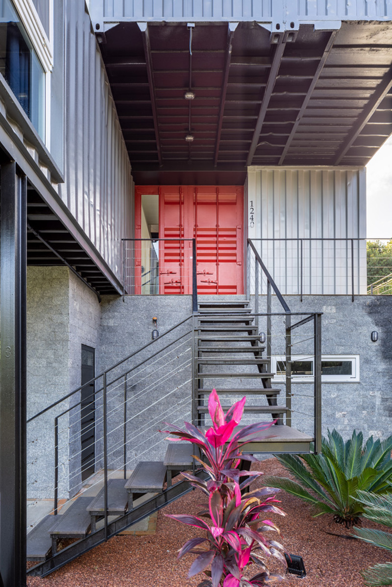 不像尋常的混凝土磚瓦房,可以用一個(gè)個(gè)的小磚頭來(lái)適應(yīng)各種地勢(shì)不平的環(huán)境,早已預(yù)設(shè)好的結(jié)構(gòu)讓集裝箱在地基的選擇范圍上稍遜一些。但是它就不值得擁有坡地的美好嗎?不,它可以“踩”在混凝土之上繼續(xù)風(fēng)采。