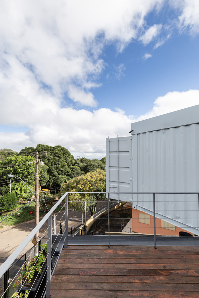 在預(yù)制混凝土的結(jié)構(gòu)中搭建,同時(shí)保持了建筑標(biāo)準(zhǔn)和工業(yè)邏輯。外墻的設(shè)計(jì)沿用了容器本身的美觀性,讓其金屬結(jié)構(gòu)保持明顯。風(fēng)景通過(guò)大窗框朝著毗鄰保護(hù)區(qū)的方向展開(kāi),旋轉(zhuǎn)的方向俯瞰著瓜伊巴河及其難忘的日落,提供了不同的景觀角度。