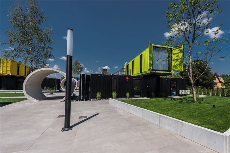 以集裝箱架構開發的住宿項目通常容易吸引人們的青睞,今天說到的是一個由集裝箱模塊化建筑打造的主題酒店,該酒店坐落在一個池塘旁,靠近自然保護區,也靠近大型游樂園。