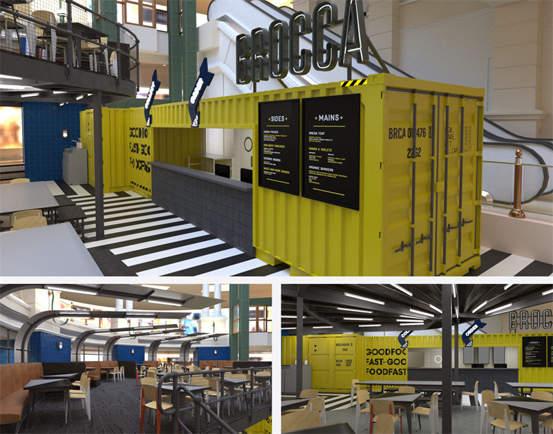 一個集裝箱將形成這個想法的基礎,其余的空間將圍繞它展開。這個集裝箱也將成為廚房和服務區,并為員工提供一個中心。夾層樓將提供額外的座位,并確保空間不會太擁擠。這將是一個出色的餐廳,以其雜亂的街頭食品和幾乎極簡主義而聞名。