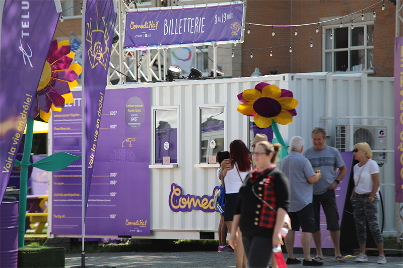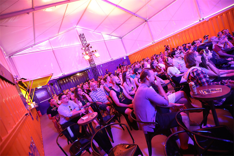 這是國外的一個(gè)喜劇節(jié),為了能響應(yīng)節(jié)日的主題,現(xiàn)場(chǎng)需要一個(gè)可以在露天搭建的劇院裝置,用以出演或者播放戲劇。為此,服務(wù)商為其提供了一個(gè)移動(dòng)架構(gòu)的概念。用七個(gè)集裝箱打造了一個(gè)大型的露天影院,隨到隨建,配備可拆卸的帆布屋頂,成為世界上第一個(gè)使用回收集裝箱建造的移動(dòng)影院。