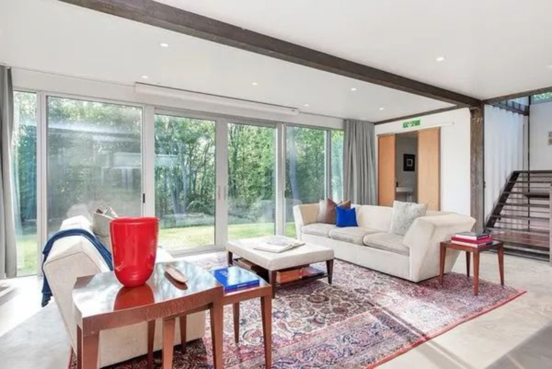 房子的外表最近經過噴砂處理,并涂上了船級的高光澤工業漆。外部的鋼木橋連接兩翼的上部樓層。