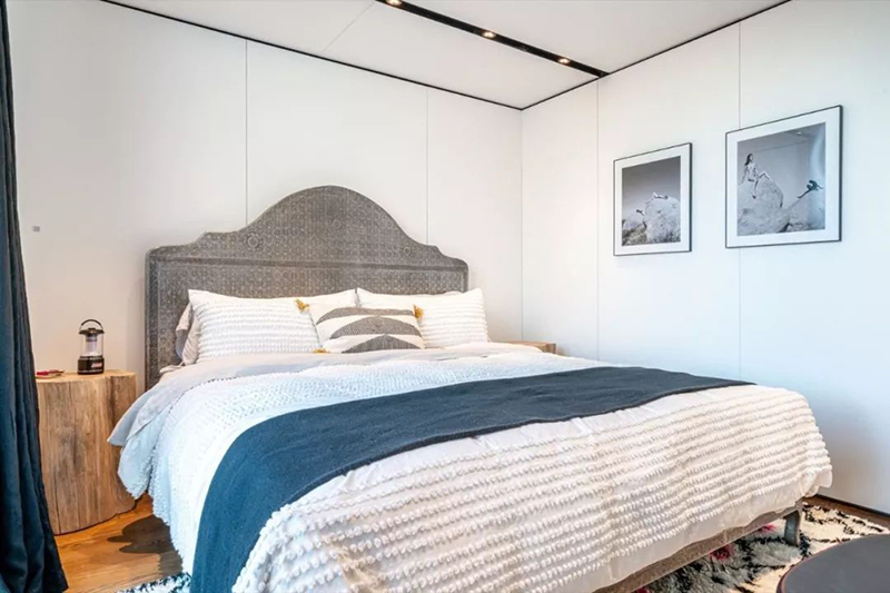 這套低沖擊、兩居室的集裝箱房屋體現了極簡主義風格的戶外環境。這個偏僻的地方被群山環繞,可以看到周圍超凡脫俗的景色,是遠離城市休閑的理想之地。為了盡可能保護原始環境,采用集裝箱設計并建造了這樣一套兩臥兩衛的房子。