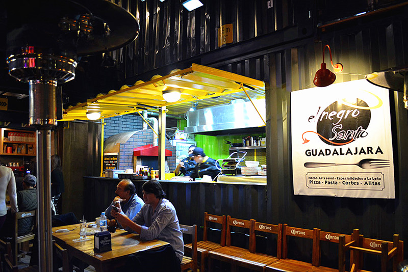 集裝箱體經過改造,側板改裝成遮陽板作為餐廳入口或窗口,內部根據各店面需要加以內部裝修,箱體表面加上各類裝飾涂鴉,充滿街頭風情,親和感十足。