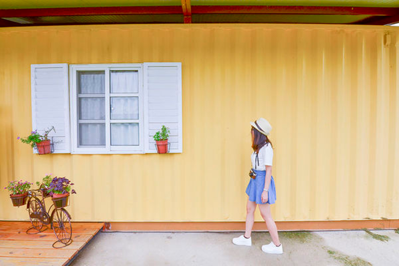 漫步在色彩繽紛的貨柜村,宛如走入了愛麗絲仙境,心情愉悅輕松。區(qū)別于一般的觀光景區(qū),好好聚落一旁腹地較廣,游園的客人無需擔(dān)憂人潮過多的情況。集裝箱經(jīng)過改造,都在立面不同的位置安上了門窗,內(nèi)部也可供使用,外部四面都添上了不同的顏色可供拍照,細(xì)心的店家還在一些集裝箱旁放置了小凳子等設(shè)施,方便游客拍照或者休息使用。