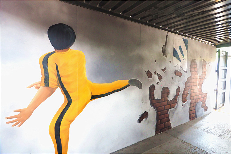 整齊的集裝箱環繞著小區,有的集裝箱內部墻面都是3D仿真彩繪,許多游客都忍不住和他們拍照留念,十分有趣;有的是對外開放的小餐廳,內部擺上桌椅等設施,外面的路人也可以在此享用休息。