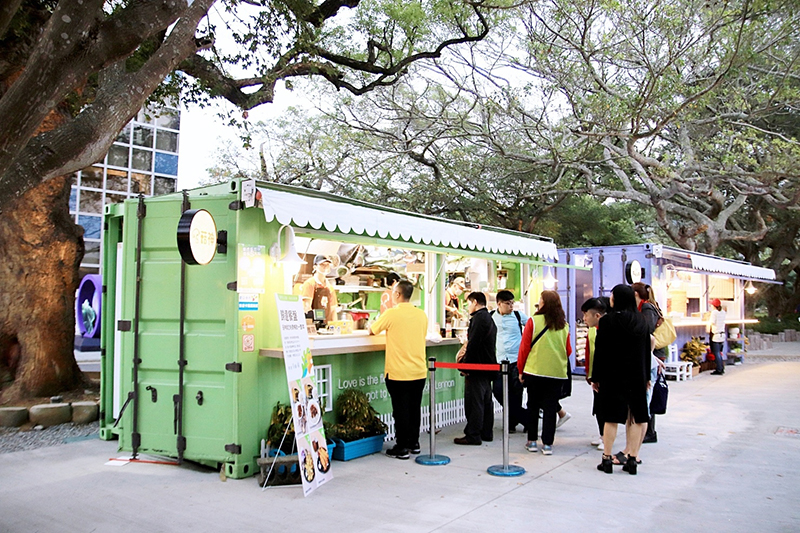 花展的一個(gè)服務(wù)區(qū),為游客打造了一個(gè)集裝修旅客服務(wù)中心、售票亭、急救站、志工室、哺集乳室等5種造型各異的機(jī)能集裝箱服務(wù)區(qū),旨在為游客提供便民服務(wù)。