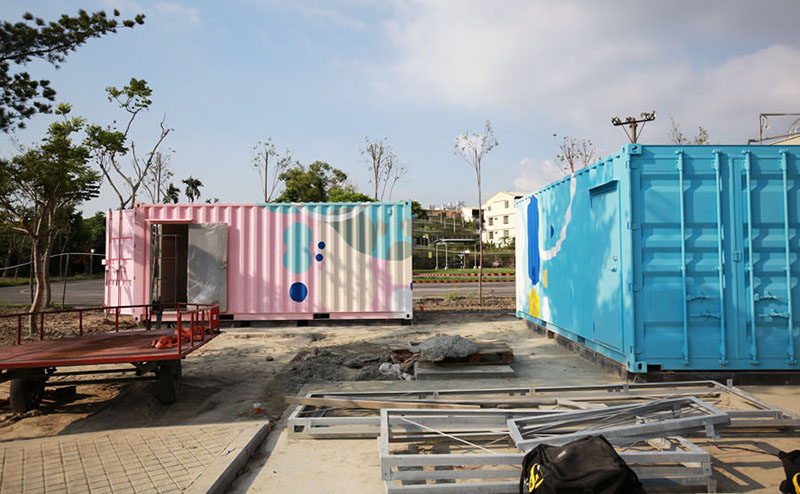 臺(tái)中市水利局表示,第五區(qū)服務(wù)設(shè)施創(chuàng)意集裝箱以【花田囍事】作為設(shè)計(jì)主軸,構(gòu)想帶入豐原糕餅文化的繁榮意象,打造出5種辨識(shí)度高、造型各異的機(jī)能集裝箱,為花展帶去不一樣的色彩。