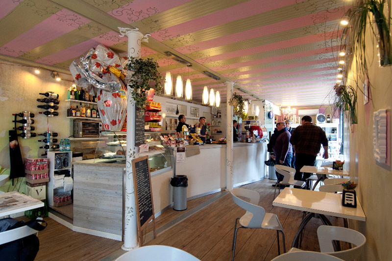 該購物中心共運用了34個40尺箱體組合而成,在提供商鋪的同時也為人們提供了一個巨大的戶外公共區域。該項目于2013年得到了當地婦女協會的贊助并重新翻新,同時也被移動到博洛尼亞市繼續用于商業用途。