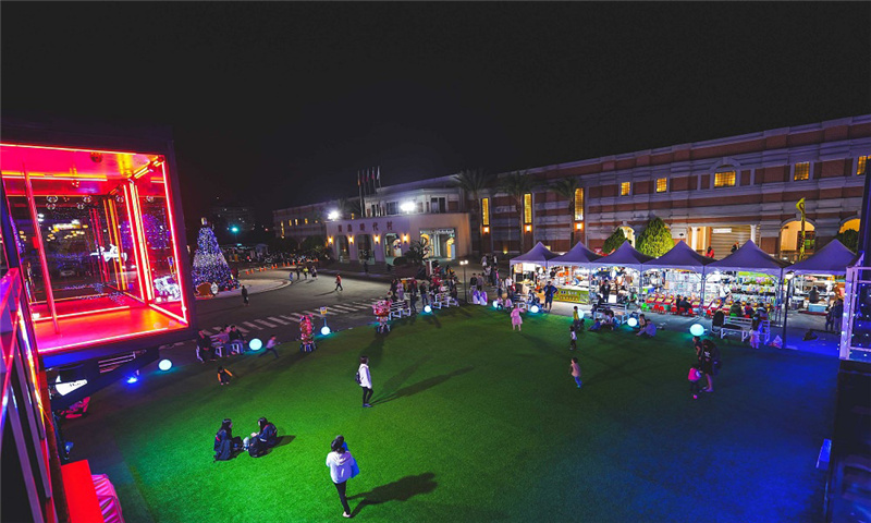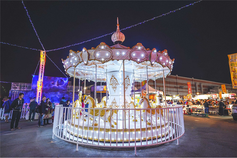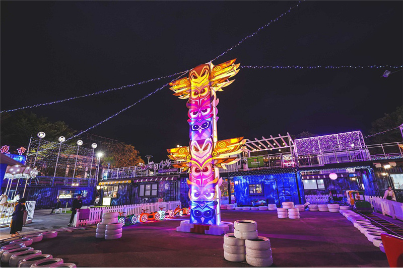 除了炫酷的建筑和多樣的商店,貓頭鷹廣場還設(shè)有許多親子游樂設(shè)施,比如電動機(jī)車、氣墊樂園、旋轉(zhuǎn)木馬和圣誕主題燈飾等。電動機(jī)車的賽道用輪胎圍起,像集裝箱一樣為環(huán)境營造著工業(yè)感;旋轉(zhuǎn)木馬雖然不是很大,但白色系加上很多燈泡就變得很浪漫,拍照也非常美。