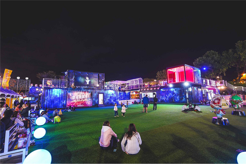 集裝箱市集前還設(shè)置了一大片草地,免費(fèi)開放給游客們。進(jìn)入玩耍之前需要先脫鞋,草地是人工草皮鋪設(shè)因此會更干凈。小朋友們可以在里面盡情跑滾打鬧,家長們則可以席地而坐,或是坐在旁邊的椅子上邊吃美食邊休息,非常放松~
