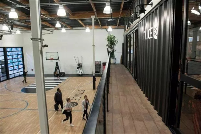 Stance 把球場和辦公室設置在了一起,在標準籃球場旁邊就是一個由黑色集裝箱壘成的辦公樓。為了方便觀賽,集裝箱專門設置了一個走廊露臺,可以清晰地看到樓下的情況。
