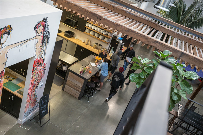 襪子品牌 stance 相信很多籃球愛好者都知道,跟很多運動品牌都出過聯名系列,韋德、科比、哈登全是它的粉絲。Stance 作為世界領先的襪子制造商之一,是NBA的官方襪子供應商。其總部是一個創意中心,旨在鼓勵健康的生活態度。之所以說它是創意中心,是因為它的辦公室看起來并不像一個辦公室,而是一個籃球場!