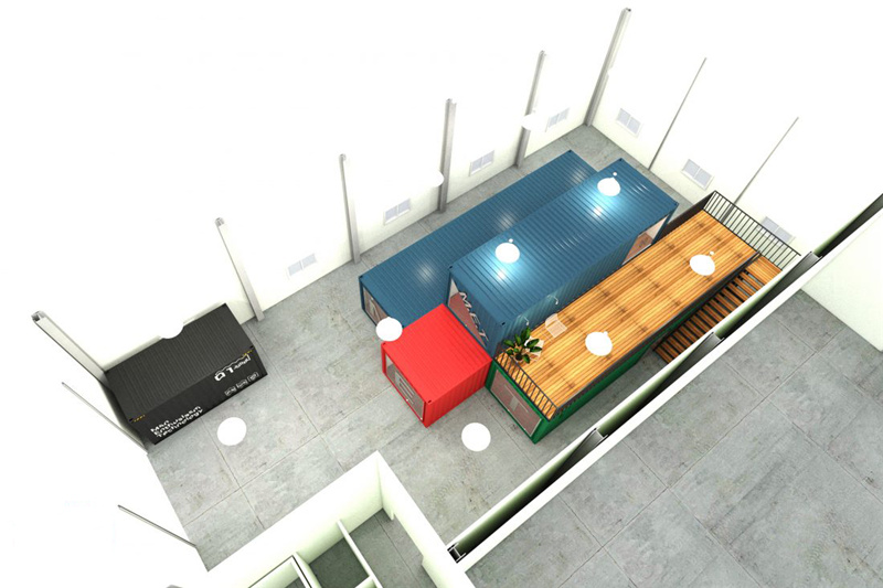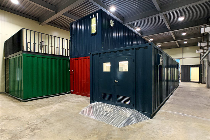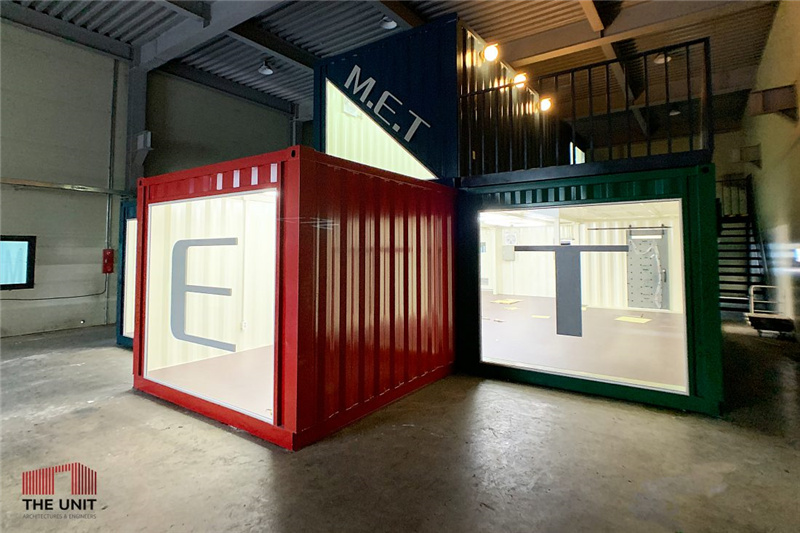 該辦公室項(xiàng)目的所在地在工業(yè)園區(qū)工廠內(nèi),采用輕鋼結(jié)構(gòu)的集裝箱,建筑面積為193.00㎡,通過工廠內(nèi)安裝集裝箱來實(shí)現(xiàn)辦公室和研究空間的建設(shè)。項(xiàng)目模塊保留了原始的集裝箱外觀,具有暴露期限的簡單工業(yè)設(shè)計(jì)概念,顏色涂層反映了企業(yè)形象的色彩設(shè)計(jì)。