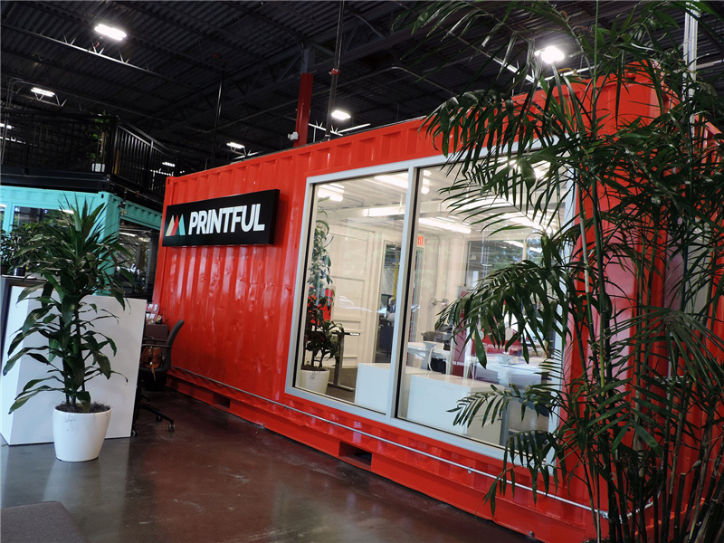 PRINTFUL 印刷公司便是一家充分考慮到搬遷問題的公司,因此它選擇將辦公司建在了集裝箱里,即便是在室內。這樣一來,就不需要再擔心辦公室的選址和擴建了。