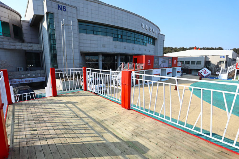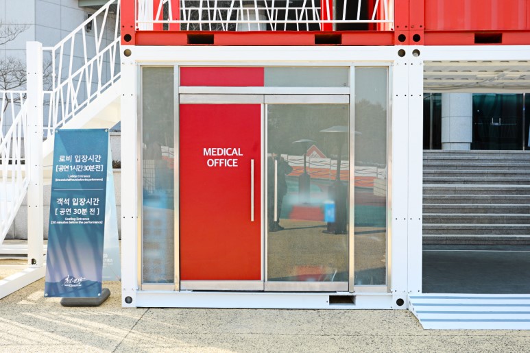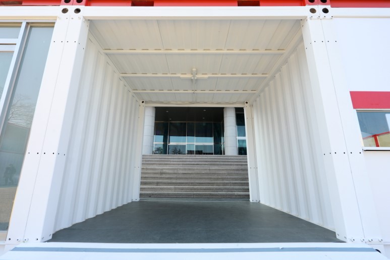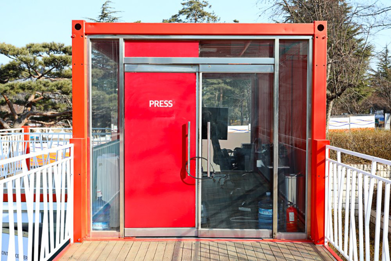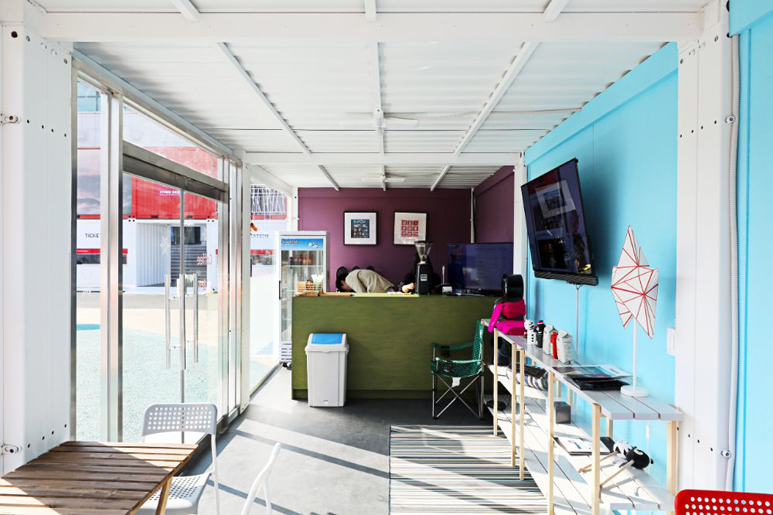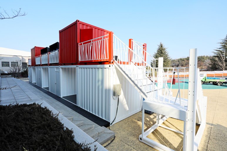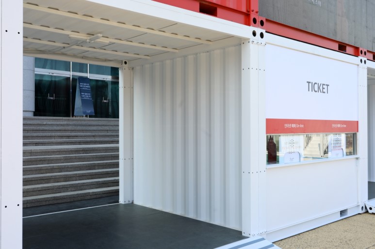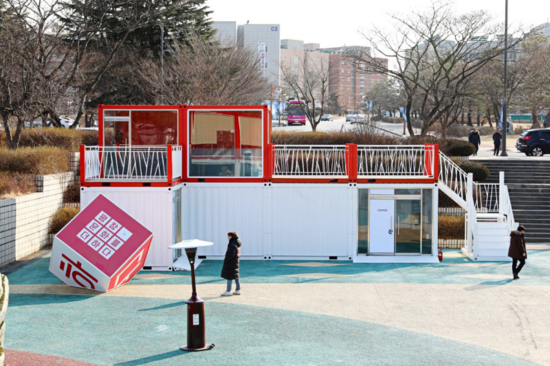 江陵原州大學(xué)是韓國(guó)的國(guó)立綜合大學(xué),坐落于東海岸的有力地勢(shì),對(duì)觀光,環(huán)境,海洋等領(lǐng)域進(jìn)行大力投資。得益于優(yōu)美的環(huán)境,一些展覽和演出會(huì)選址在大學(xué)里進(jìn)行。為了方便臨時(shí)售票和進(jìn)出場(chǎng),一些集裝箱建筑被佇立在了這里。