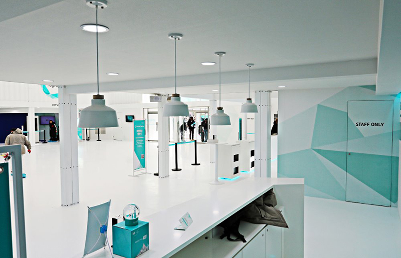 進入之后恍若一個大型的室內(nèi)廣場,一個舞臺設置在廣場的正前方,舞臺上是一面巨大的電子屏,在平昌奧運會期間實現(xiàn)了直播現(xiàn)場,為市民帶來了很大的便利。